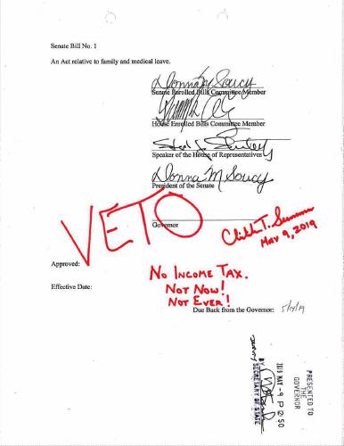 A quick example is last year's SB 1, relative to family and medical leave. SB 1 would have created a system for paid leave that would enable parents with new babies to take paid time away from work to be with the new addition to their family. It also would have given people with health problems time off, or time to help a family member with a serious illness. It was a bill to help families. The sponsors of the bills all voted against it - with the exception of Prudhomme-O'Brien and Abigail Rooney, who were both absent on the day of the vote.